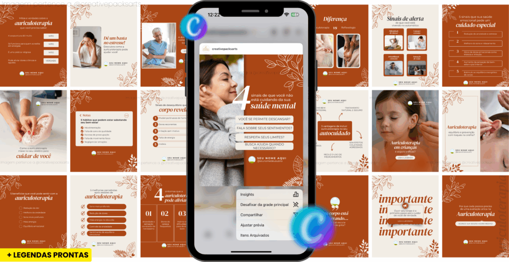 Material totalmente editável no Canva gratuito — conteúdo feito para o seu nicho, com legendas prontas e já foi atualizado para o novo formato retrato do feed!