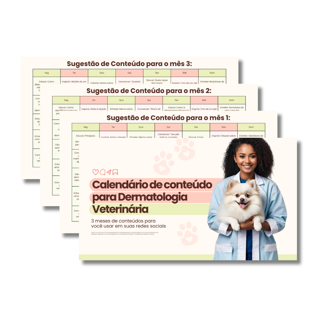 Muitas profissionais estão se destacando neste EXATO MOMENTO com as 50 artes editáveis para Dermatologia Veterinária, Só falta você!