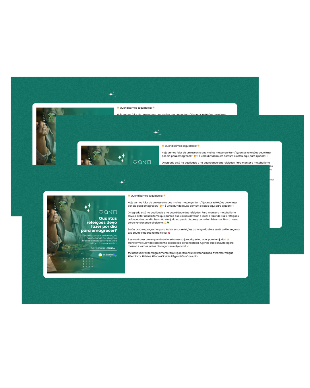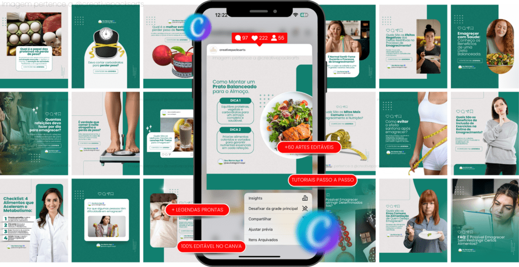 Neste EXATO MOMENTO, muitas profissionais estão se destacando com as 60 artes editáveis para Nutrição para Emagrecimento. 💼✨ Só falta você conquistar o seu espaço!
