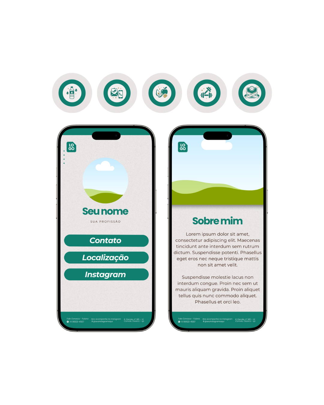 Receba: capas para destaques, destaques estratégicos e um cartão interativo/biolink que combina com seus posts.